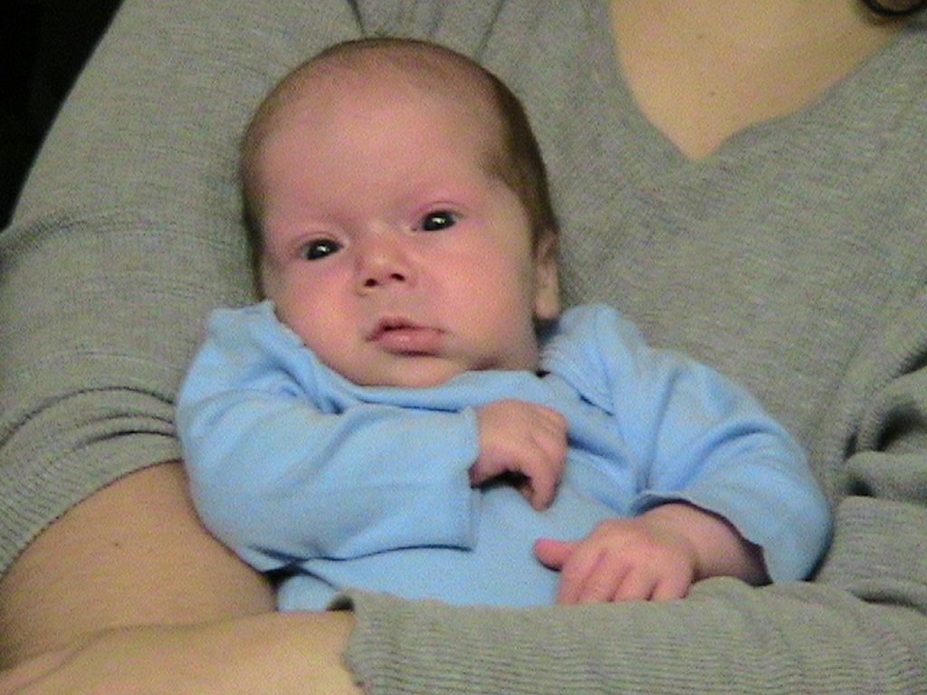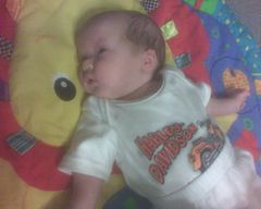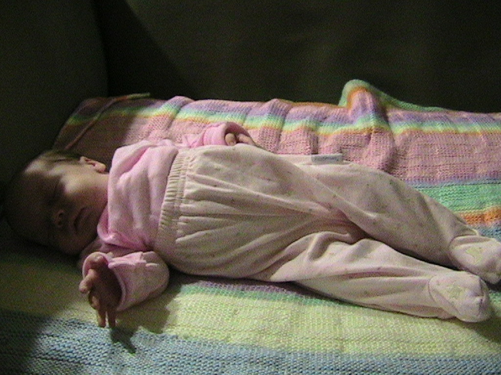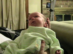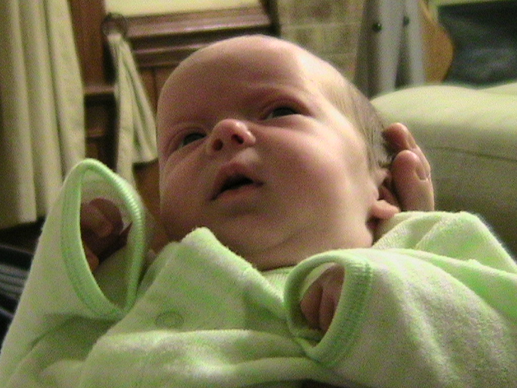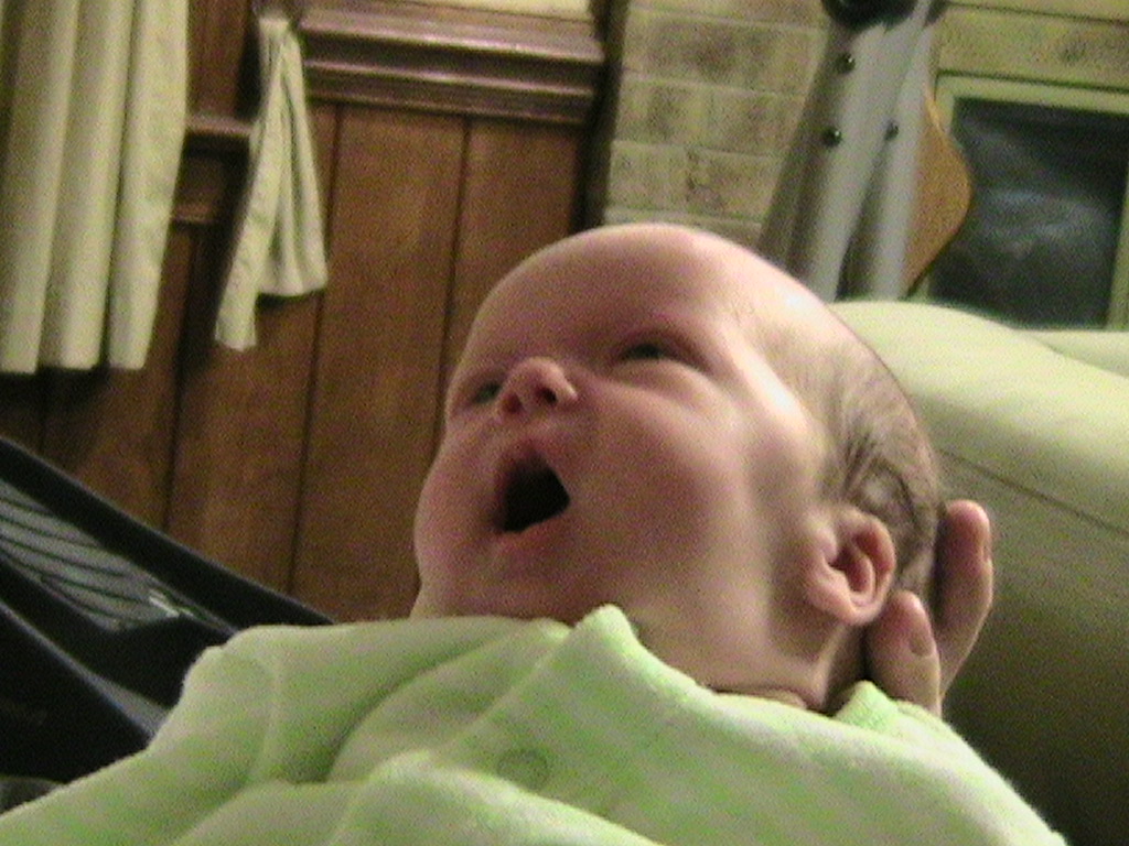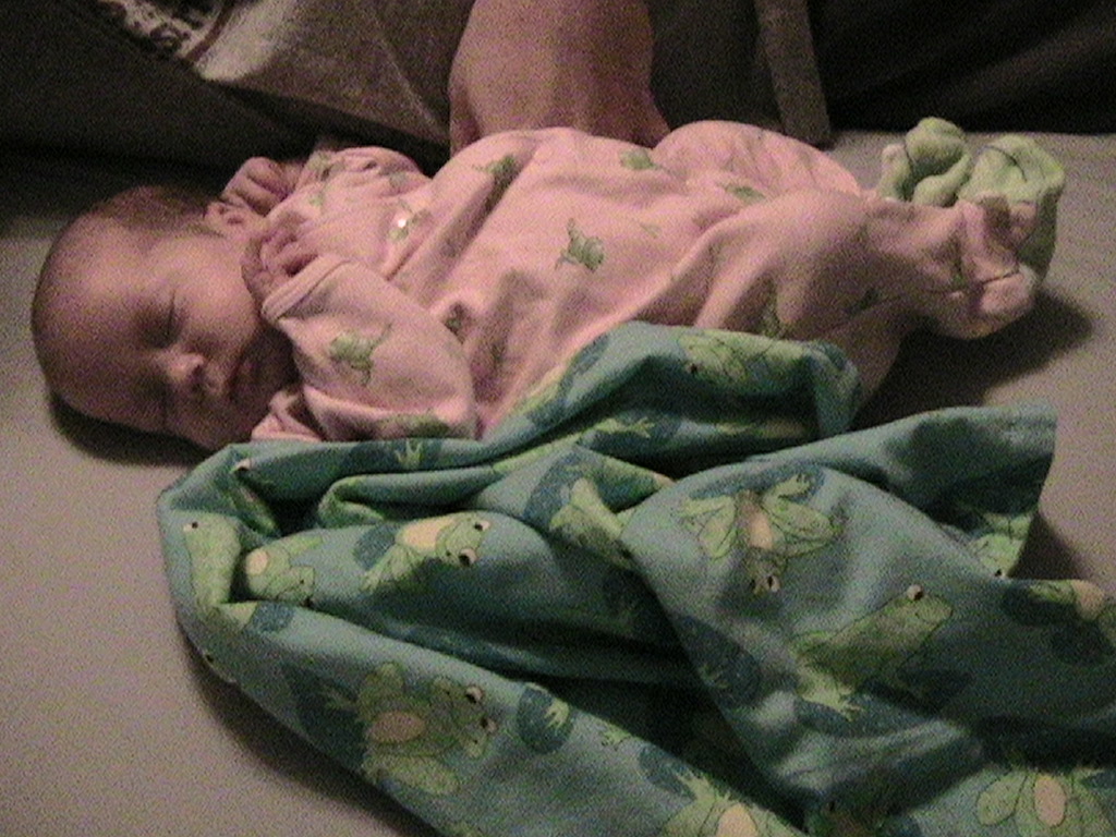 Check out the frog-feet on my sleeper - it goes well with the froggy blanket I brought home from the hospital.
